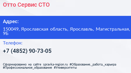 Отто Сервис, СТО по адресу 150049, Ярославская область, Ярославль, Магистральная, 9Б в дальнейшем Организация, размещена в следующих категориях: