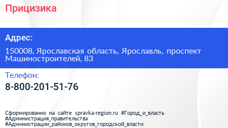 Прицизика по адресу 150008, Ярославская область, Ярославль, проспект Машиностроителей, 83 в дальнейшем Организация, размещена в следующих категориях: