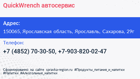 QuickWrench, автосервис по адресу 150065, Ярославская область, Ярославль, Сахарова, 29г в дальнейшем Организация, размещена в следующих категориях: