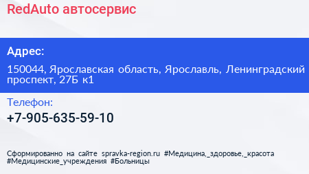 RedAuto, автосервис по адресу 150044, Ярославская область, Ярославль, Ленинградский проспект, 27Б к1 в дальнейшем Организация, размещена в следующих категориях: