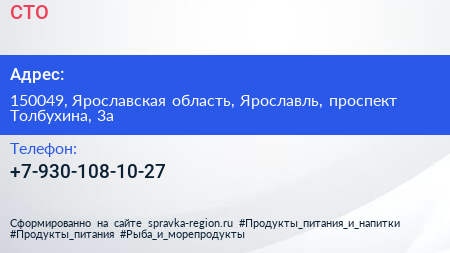 СТО по адресу 150049, Ярославская область, Ярославль, проспект Толбухина, 3а в дальнейшем Организация, размещена в следующих категориях: