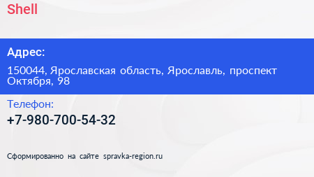 Shell по адресу 150044, Ярославская область, Ярославль, проспект Октября, 98 в дальнейшем Организация, размещена в следующих категориях: