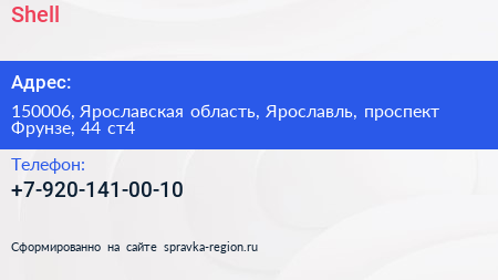 Shell по адресу 150006, Ярославская область, Ярославль, проспект Фрунзе, 44 ст4 в дальнейшем Организация, размещена в следующих категориях: