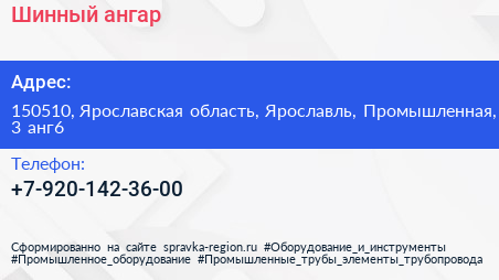 Шинный ангар по адресу 150510, Ярославская область, Ярославль, Промышленная, 3 анг6 в дальнейшем Организация, размещена в следующих категориях: