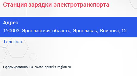 Станция зарядки электротранспорта по адресу 150003, Ярославская область, Ярославль, Воинова, 12 в дальнейшем Организация, размещена в следующих категориях: