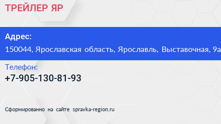 ТРЕЙЛЕР-ЯР по адресу 150044, Ярославская область, Ярославль, Выставочная, 9а в дальнейшем Организация, размещена в следующих категориях: