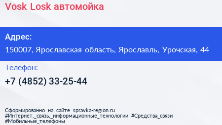 Vosk & Losk, автомойка по адресу 150007, Ярославская область, Ярославль, Урочская, 44 в дальнейшем Организация, размещена в следующих категориях: