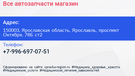 Все автозапчасти, магазин по адресу 150003, Ярославская область, Ярославль, проспект Октября, 78Б ст2 в дальнейшем Организация, размещена в следующих категориях: