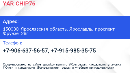 YAR-CHIP76 по адресу 150030, Ярославская область, Ярославль, проспект Фрунзе, 28г в дальнейшем Организация, размещена в следующих категориях: