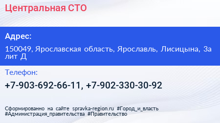Центральная, СТО по адресу 150049, Ярославская область, Ярославль, Лисицына, 3а лит Д в дальнейшем Организация, размещена в следующих категориях:
