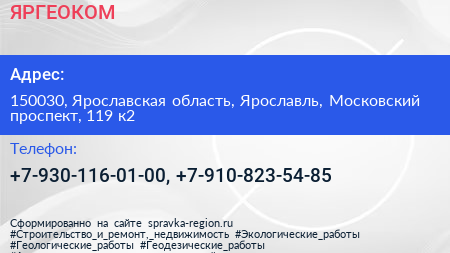 ЯРГЕОКОМ по адресу 150030, Ярославская область, Ярославль, Московский проспект, 119 к2 в дальнейшем Организация, размещена в следующих категориях:
