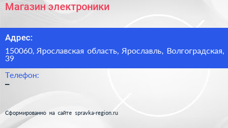 Магазин электроники по адресу 150060, Ярославская область, Ярославль, Волгоградская, 39 в дальнейшем Организация, размещена в следующих категориях: