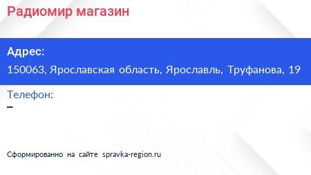 Радиомир, магазин по адресу 150063, Ярославская область, Ярославль, Труфанова, 19 в дальнейшем Организация, размещена в следующих категориях: