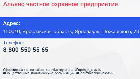 Альянс, частное охранное предприятие по адресу 150010, Ярославская область, Ярославль, Пожарского, 73 в дальнейшем Организация, размещена в следующих категориях: