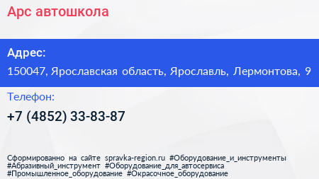Арс, автошкола по адресу 150047, Ярославская область, Ярославль, Лермонтова, 9 в дальнейшем Организация, размещена в следующих категориях: