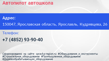 Автопилот, автошкола по адресу 150047, Ярославская область, Ярославль, Кудрявцева, 26 в дальнейшем Организация, размещена в следующих категориях: