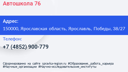 Автошкола 76 по адресу 150000, Ярославская область, Ярославль, Победы, 38/27 в дальнейшем Организация, размещена в следующих категориях: