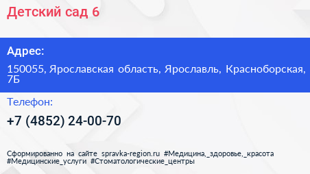 Детский сад №6 по адресу 150055, Ярославская область, Ярославль, Красноборская, 7Б в дальнейшем Организация, размещена в следующих категориях: