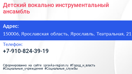 Детский вокально-инструментальный ансамбль по адресу 150006, Ярославская область, Ярославль, Театральная, 21 в дальнейшем Организация, размещена в следующих категориях:
