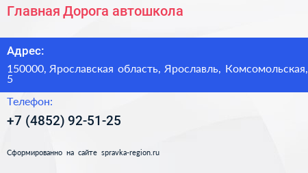 Главная Дорога, автошкола по адресу 150000, Ярославская область, Ярославль, Комсомольская, 5 в дальнейшем Организация, размещена в следующих категориях:
