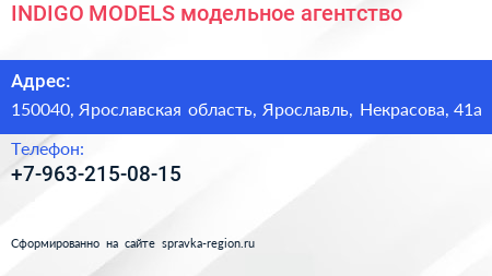 INDIGO MODELS, модельное агентство по адресу 150040, Ярославская область, Ярославль, Некрасова, 41а в дальнейшем Организация, размещена в следующих категориях: