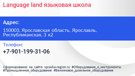 Language land, языковая школа по адресу 150003, Ярославская область, Ярославль, Республиканская, 3 к2 в дальнейшем Организация, размещена в следующих категориях: