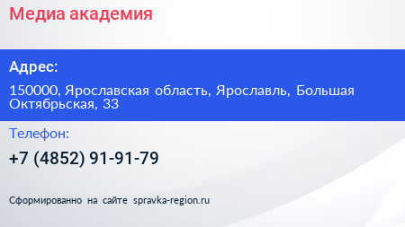 Медиа-академия по адресу 150000, Ярославская область, Ярославль, Большая Октябрьская, 33 в дальнейшем Организация, размещена в следующих категориях: