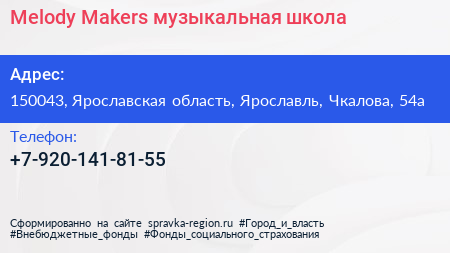Melody Makers, музыкальная школа по адресу 150043, Ярославская область, Ярославль, Чкалова, 54а в дальнейшем Организация, размещена в следующих категориях: