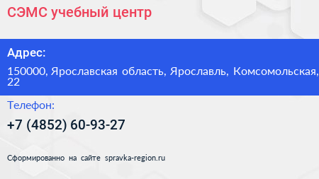 СЭМС, учебный центр по адресу 150000, Ярославская область, Ярославль, Комсомольская, 22 в дальнейшем Организация, размещена в следующих категориях: