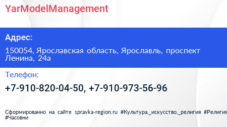 YarModelManagement по адресу 150054, Ярославская область, Ярославль, проспект Ленина, 24а в дальнейшем Организация, размещена в следующих категориях:
