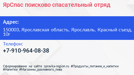 ЯрСпас, поисково-спасательный отряд по адресу 150003, Ярославская область, Ярославль, Красный съезд, 10г в дальнейшем Организация, размещена в следующих категориях: