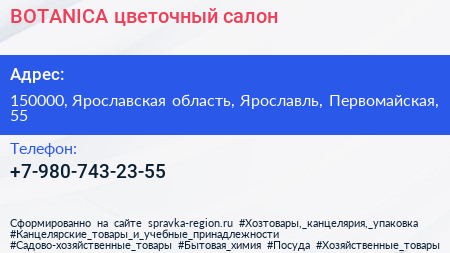 BOTANICA, цветочный салон по адресу 150000, Ярославская область, Ярославль, Первомайская, 55 в дальнейшем Организация, размещена в следующих категориях: