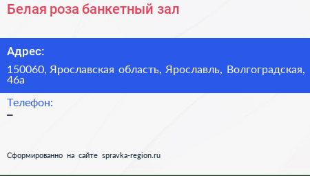Белая роза, банкетный зал по адресу 150060, Ярославская область, Ярославль, Волгоградская, 46а в дальнейшем Организация, размещена в следующих категориях: