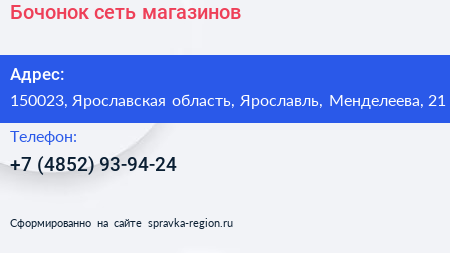 Бочонок, сеть магазинов по адресу 150023, Ярославская область, Ярославль, Менделеева, 21 в дальнейшем Организация, размещена в следующих категориях: