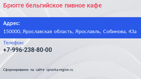 Брюгге, бельгийское пивное кафе по адресу 150000, Ярославская область, Ярославль, Собинова, 43а в дальнейшем Организация, размещена в следующих категориях: