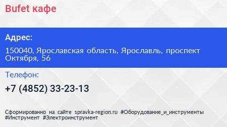 Bufet, кафе по адресу 150040, Ярославская область, Ярославль, проспект Октября, 56 в дальнейшем Организация, размещена в следующих категориях: