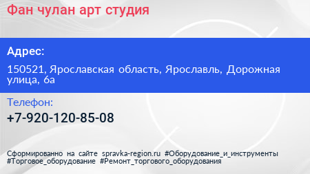 Фан-чулан, арт-студия по адресу 150521, Ярославская область, Ярославль, Дорожная улица, 6а в дальнейшем Организация, размещена в следующих категориях: