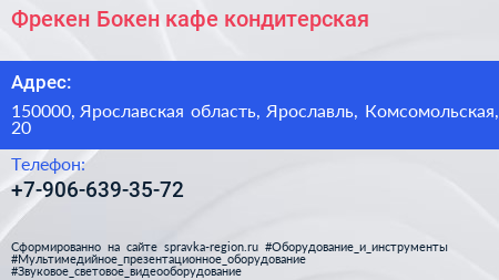 Фрекен Бокен, кафе-кондитерская по адресу 150000, Ярославская область, Ярославль, Комсомольская, 20 в дальнейшем Организация, размещена в следующих категориях: