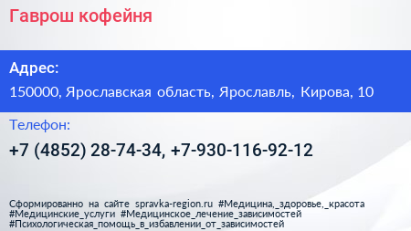 Гаврош, кофейня по адресу 150000, Ярославская область, Ярославль, Кирова, 10 в дальнейшем Организация, размещена в следующих категориях: