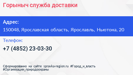 Горыныч, служба доставки по адресу 150048, Ярославская область, Ярославль, Ньютона, 20 в дальнейшем Организация, размещена в следующих категориях: