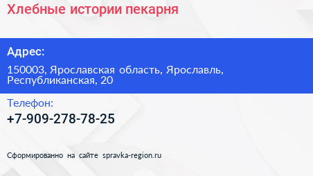 Хлебные истории, пекарня по адресу 150003, Ярославская область, Ярославль, Республиканская, 20 в дальнейшем Организация, размещена в следующих категориях: