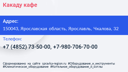 Какаду, кафе по адресу 150043, Ярославская область, Ярославль, Чкалова, 32 в дальнейшем Организация, размещена в следующих категориях: