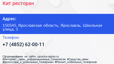 Кит, ресторан по адресу 150545, Ярославская область, Ярославль, Школьная улица, 1 в дальнейшем Организация, размещена в следующих категориях: