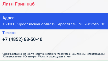 Литл Грин, паб по адресу 150000, Ярославская область, Ярославль, Ушинского, 30 в дальнейшем Организация, размещена в следующих категориях: