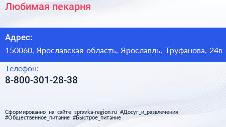 Любимая, пекарня по адресу 150060, Ярославская область, Ярославль, Труфанова, 24в в дальнейшем Организация, размещена в следующих категориях: