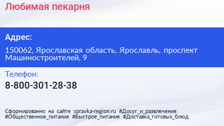 Любимая, пекарня по адресу 150062, Ярославская область, Ярославль, проспект Машиностроителей, 9 в дальнейшем Организация, размещена в следующих категориях: