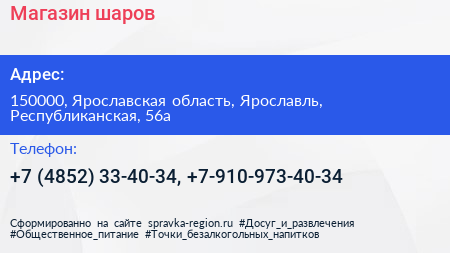 Магазин шаров по адресу 150000, Ярославская область, Ярославль, Республиканская, 56а в дальнейшем Организация, размещена в следующих категориях: