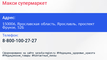 Макси, супермаркет по адресу 150006, Ярославская область, Ярославль, проспект Фрунзе, 52Б в дальнейшем Организация, размещена в следующих категориях: