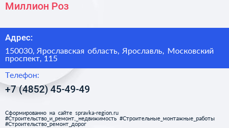 Миллион Роз по адресу 150030, Ярославская область, Ярославль, Московский проспект, 115 в дальнейшем Организация, размещена в следующих категориях: