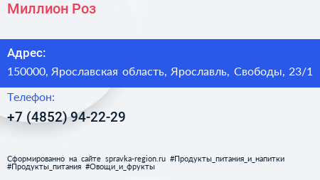 Миллион Роз по адресу 150000, Ярославская область, Ярославль, Свободы, 23/1 в дальнейшем Организация, размещена в следующих категориях: